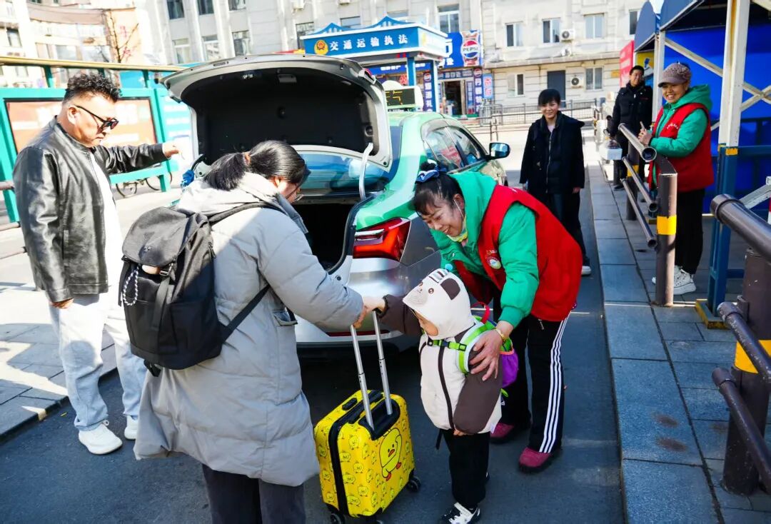 춘절 수송 기간, 철도 단동역의 려객 흐름이 많았다. 출구와 택시 승차장 등 곳곳에서 '정수산 자원봉사복무대' 대원들이 빨간 조끼를 입고 려객들에게 길 안내, 문의 응답, 짐 운반 등 봉사를 제공하며 역의 따뜻한 풍경이 되고 있다.
