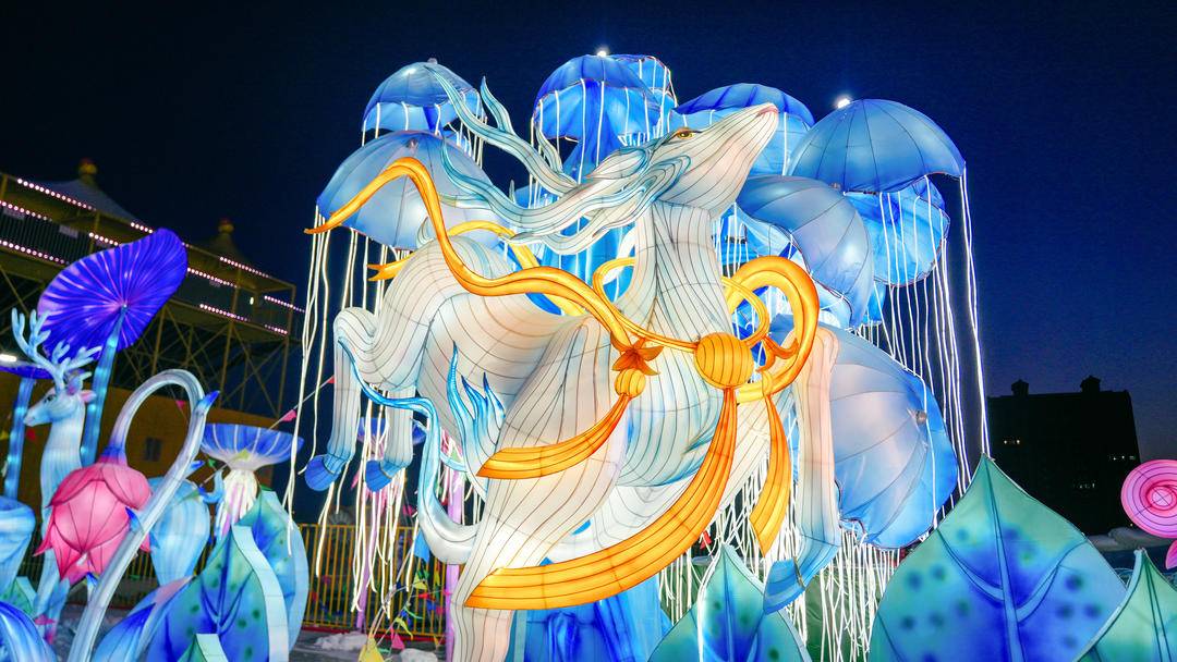 료녕성 안산시 리산구 난사하 강변에 위치한 영산스포츠공원이 형형색색의 화려한 꽃등으로 물들었다. 시민들은 이 속을 거닐며 사진 촬영에 여념이 없다. 십이지신, 달리는 말떼, 날개 펼치는 봉황 등 다양한 이미지의 등불이 시민들과 려행객들에게 화려한 볼거리를 선사하였다.
