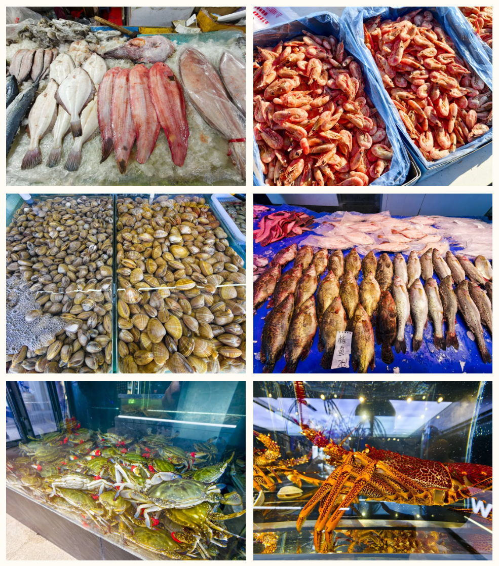 현장에는 사람들의 발길이 끊이지 않으며 모두가 설맞이 만찬상에 올릴 해산물을 고르거나 포장하여 친척과 벗들에게 부쳐주고 있다.