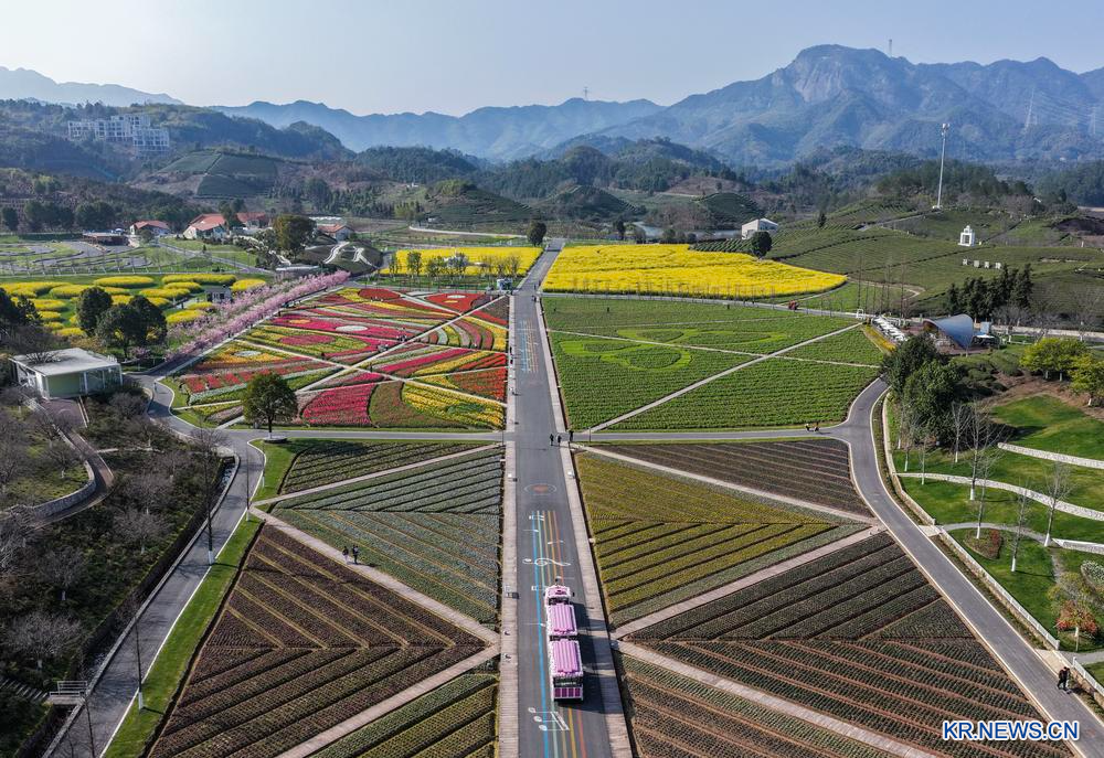[신화망 중국 금화 3월 11일발] 화전미지 관광지는 절강성 금화시 무의현에 위치한 농촌관광대상이다. 최근 관광지내 황금빛 유채꽃과 분홍빛 벚꽃, 형형색색의 튤립 등이 어우러져 관광객들의 발걸음이 이어지고 있다.