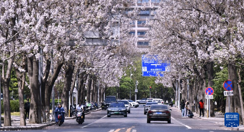 近日,在有“泡桐大道”之称的北京市经济技术开发区宏达路两侧,泡桐花进入观赏黄金期。