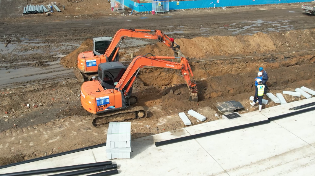 项目9月25日开工以来,施工单位组织工人和机械进场,全速推进锅炉基础承台浇筑、热网管道及补水管道施工回填、检修楼土方开挖等作业。