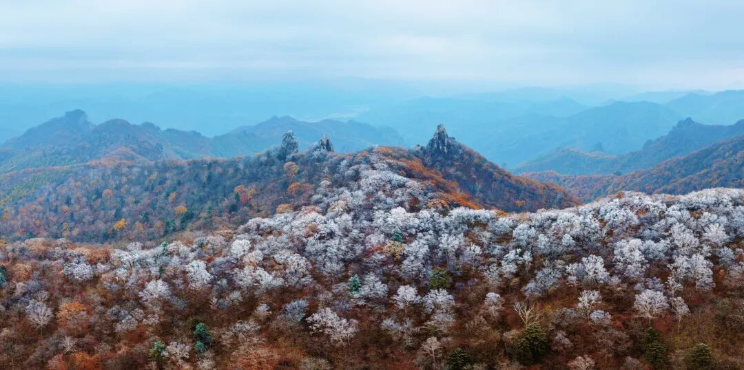 当晨曦微露,游客们惊喜地发现,昔日色彩斑斓的山岭仿佛在一夜之间被施了魔法。原本火红、金黄的枫树、桦树枝头,凝结了厚厚一层洁白的冰晶,形成了美丽的雾凇。