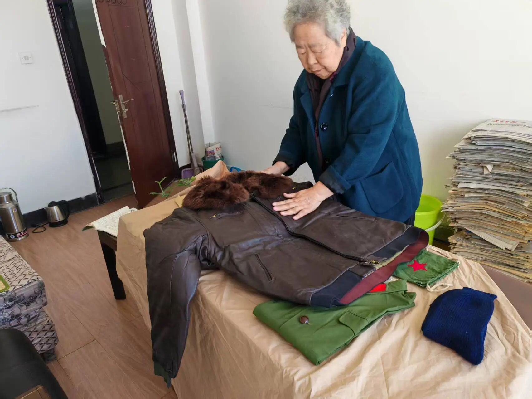 郭桂芝老人患有高血压、高血糖,近期又因患上耳石症,呕吐不止,住进了医院。“看来,我不能将烈士遗物亲自送到北京,就委托你们帮我邮寄。”老人一一介绍着整理得干净整齐的遗物:这是烈士生前的棉袜子,这是牙具布袋,这是飞行冬季皮服……总共5件。老人说,整整49年了,她把这些遗物放在当年结婚时父亲给置办的木箱里,每年夏天都拿出来晒一到两次,这期间,搬了3次家,但这些遗物保存完好。