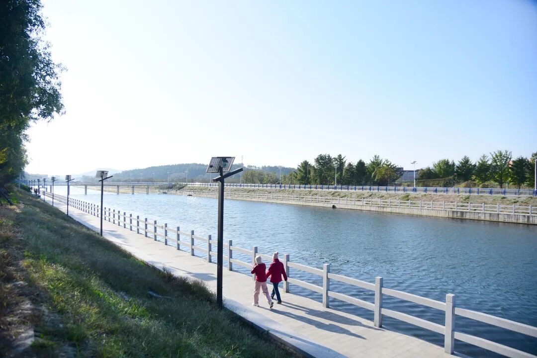 如今,1000多米长的河道已经完成改造:两岸新建的护坡、步道、护栏、太阳能路灯、休闲广场和亲水平台等配套设施均已建设完工。沿岸新种植的景观树木错落有致,提升镇区颜值和居民生活质量。