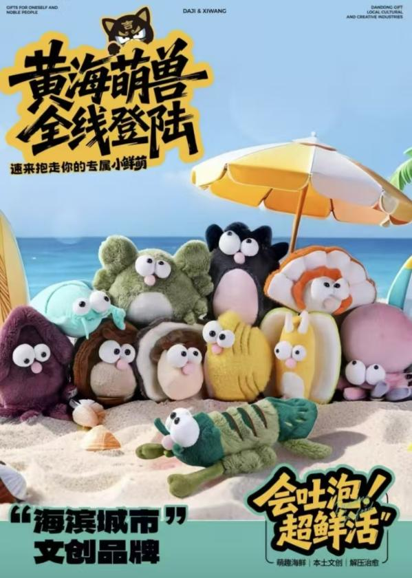 “大吉和喜旺”巧妙地将丹东本土的海鲜特产与文创设计相结合,创造出一系列生动可爱、情感丰富的毛绒挂件。每一只“小海鲜”都拥有独特的名字和个性,不仅萌态可掬、治愈心灵,还具备互动解压的功能。“我们出售的不是普通的毛绒玩具,而是丹东的鲜活海鲜,个个饱满且充满活力!”这句销售口号,不仅展现了产品的趣味性,更让每一位顾客深切感受到丹东海鲜特产的鲜活魅力以及这座城市的文化温情。