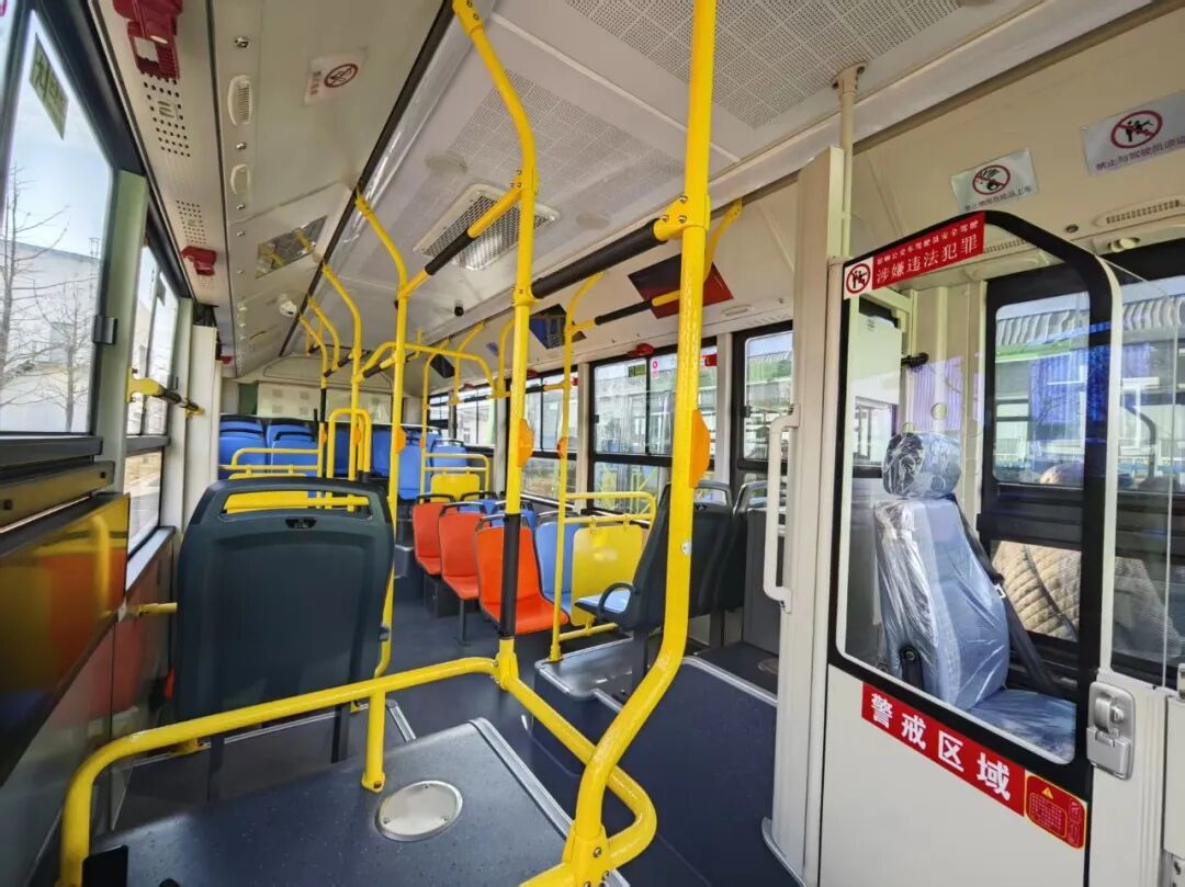 新亮相的新能源公交车,在车辆设计上,采用低入口设计,更好地方便老年乘客上下车;配置人体工程学皮革软垫座椅,标配空调系统,乘坐更舒适。