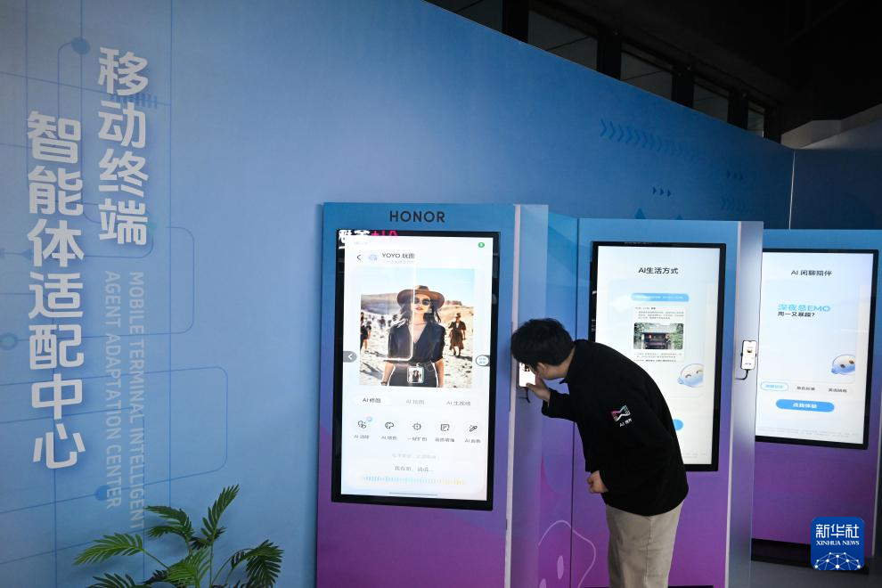 12月4日,在南京人工智能生态街区的“AI·模坊”南京智能体集散中心,工作人员与智能移动终端互动。(新华社记者 季春鹏 摄)