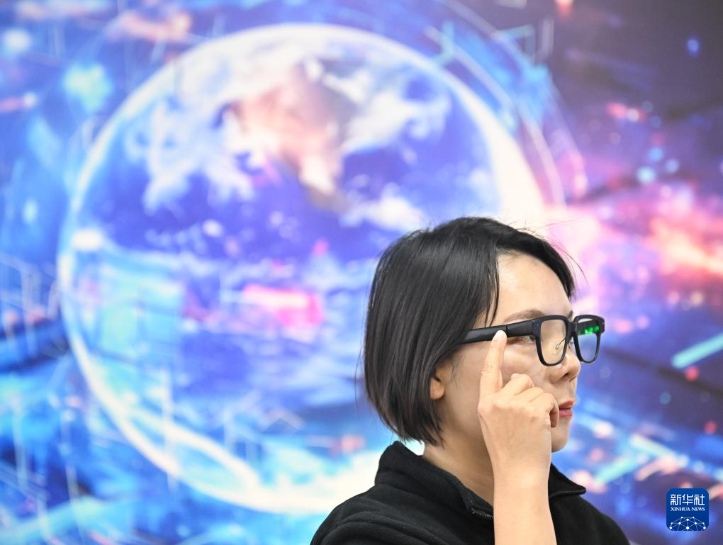12月4日,在“AI·镜界—南京人工智能生态街区”,工作人员展示一款AI眼镜。(新华社记者 季春鹏 摄)