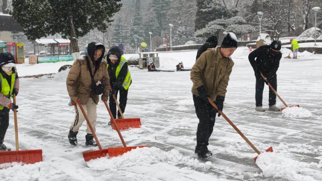 12月23日,市城市建设指导服务中心城市公园部以雪为令,迅速启动应急预案,组织人力物力,对锦江山公园、元宝山公园、帽盔山公园等主要公园景区内的道路、广场、台阶等重点区域进行清雪除冰,全力保障市民游园安全。