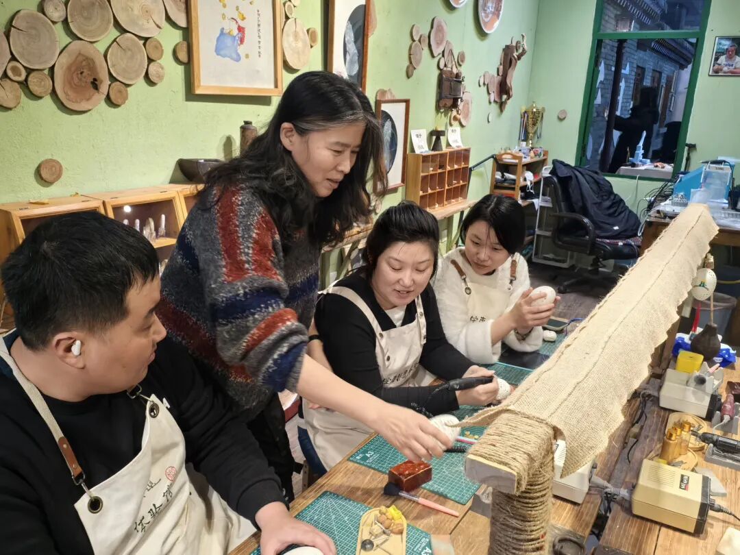 与此同时,安东老街二楼的于文蛋、瓷雕刻非遗手工工作室,以沉浸式体验吸引大批亲子家庭与非遗爱好者,体验预约排期紧凑,参与人次众多,相关文创产品同步热销,实现“非遗体验+产品销售”双向增收。