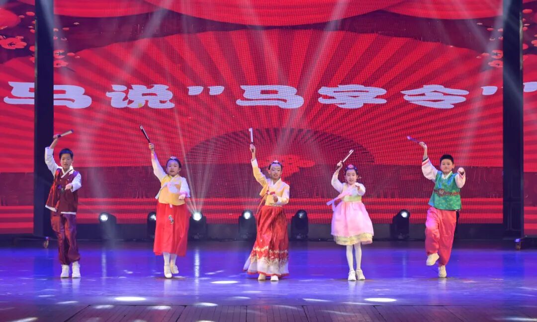 市朝鲜族中学的孩子们带来的群口相声《马说马字令》将马年元素与朝鲜族语言特色巧妙结合,台词诙谐幽默、台风活泼灵动,赢得了满堂欢笑;朝鲜族传统器乐伽倻琴齐奏《阳山道+万泉河水》堪称文化融合的典范,传统朝鲜族乐曲《阳山道》的灵动与经典曲目《万泉河水》的悠扬相得益彰,琴弦轻拨间,民族韵律与红色情怀交织共鸣,尽显器乐艺术的跨界之美。