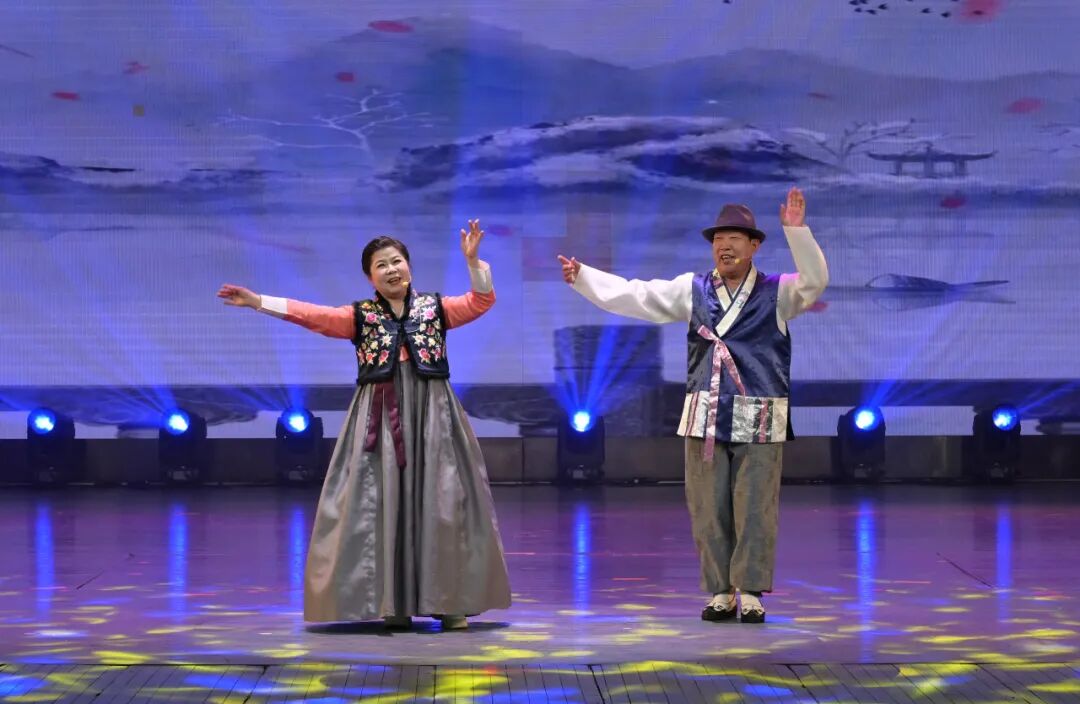 作为朝鲜族文化的标志性符号,民谣二重唱《永庵阿里郎》成为本次展演的一大亮点,两位省、市级朝鲜族民谣传承人登台献艺,婉转悠扬的唱腔承载着千年民族情愫,细腻诠释了这首“民族之歌”的深厚底蕴与动人意境,让观众沉浸式感受朝鲜族民谣的独特魅力。