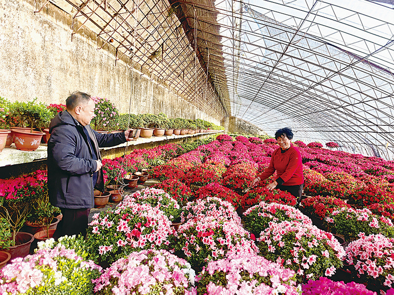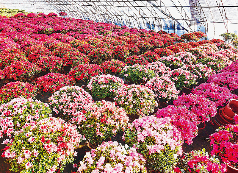 室外天寒地冻,棚内暖意融融。春节前夕,振安区同兴镇变电村四组孙忠君家的温室大棚里,一株株盆景杜鹃竞相绽放,玫红、净白、淡紫等色彩交织成绚烂花海,展现了一幅现代农业与自然之美碰撞出的致富画卷。