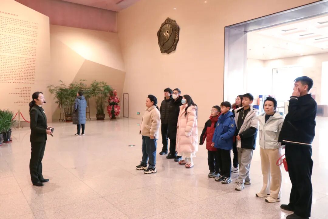 8时30分,纪念馆准时开馆,预约观众有序入场。他们中有搀扶着老人的家庭,有带着孩子的家长,也有独自前来的退役军人,每个人的脸上都带着崇敬与期许。“10岁的儿子一直对抗美援朝这段历史感兴趣,我们平时工作忙,正好看到抗美援朝纪念馆春节开馆,所以特地带他过来。”鞍山的刘先生和家人自驾来丹,一家五口计划参观结束就返回鞍山。“选在除夕这个特别的日子带着父母、孩子来到这里,就是想让孩子在这个团圆时刻铭记英雄事迹,更加懂得今天的幸福生活来之不易。”