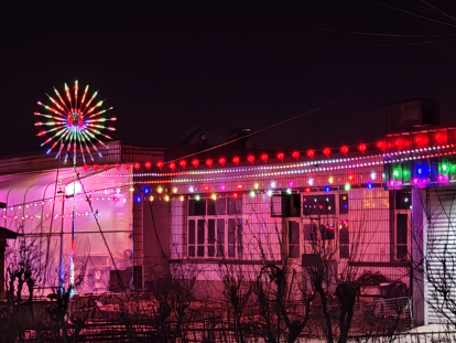 大家自发动手,搭梯子、挂灯饰、理线路,用一双双勤劳的手,把对新年的期盼、对生活的热爱,融进每一盏灯光里。