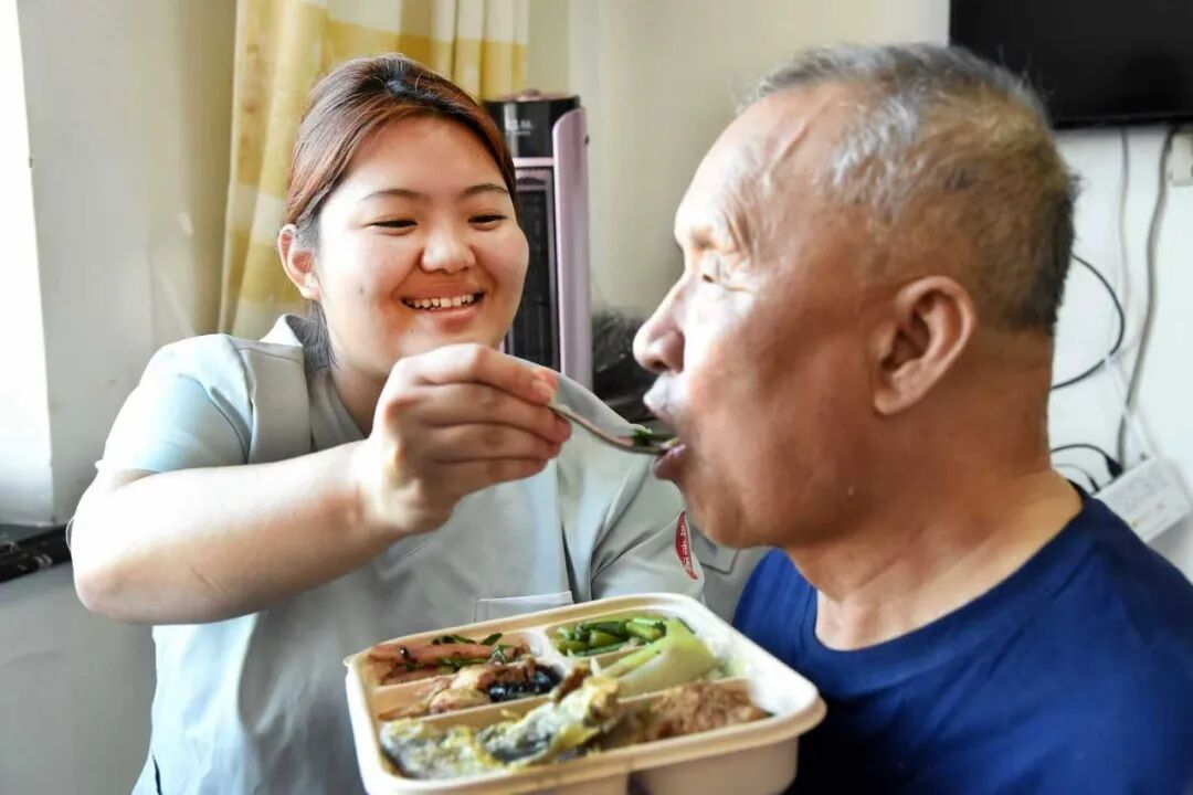 随着饭菜陆续上齐,身体允许的养员被护理人员用轮椅推来,暂时不能活动的由护理人员在房间内喂饭。“他们是为国家、为人民作出贡献的荣誉军人。我们没有和家人过年而陪伴他们,值得,也很骄傲。”护理人员王奕涵说。
