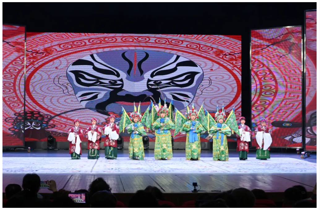 率先登场的《传统京剧联唱》中,《卖水》的俏皮、《对花枪》的沉稳、《铡美案》的苍劲、《三家店》的豪迈、《穆桂英挂帅》的英气,依次呈现。演出接近尾声,京歌《走向复兴》压轴登场。台上的演员们身着戏装,唱腔激昂;台下观众起立鼓掌,久久不息。