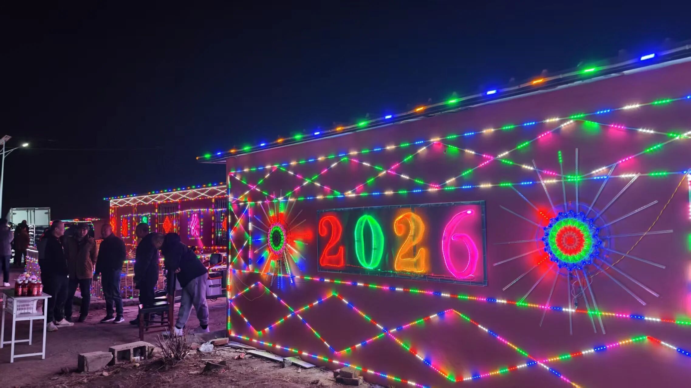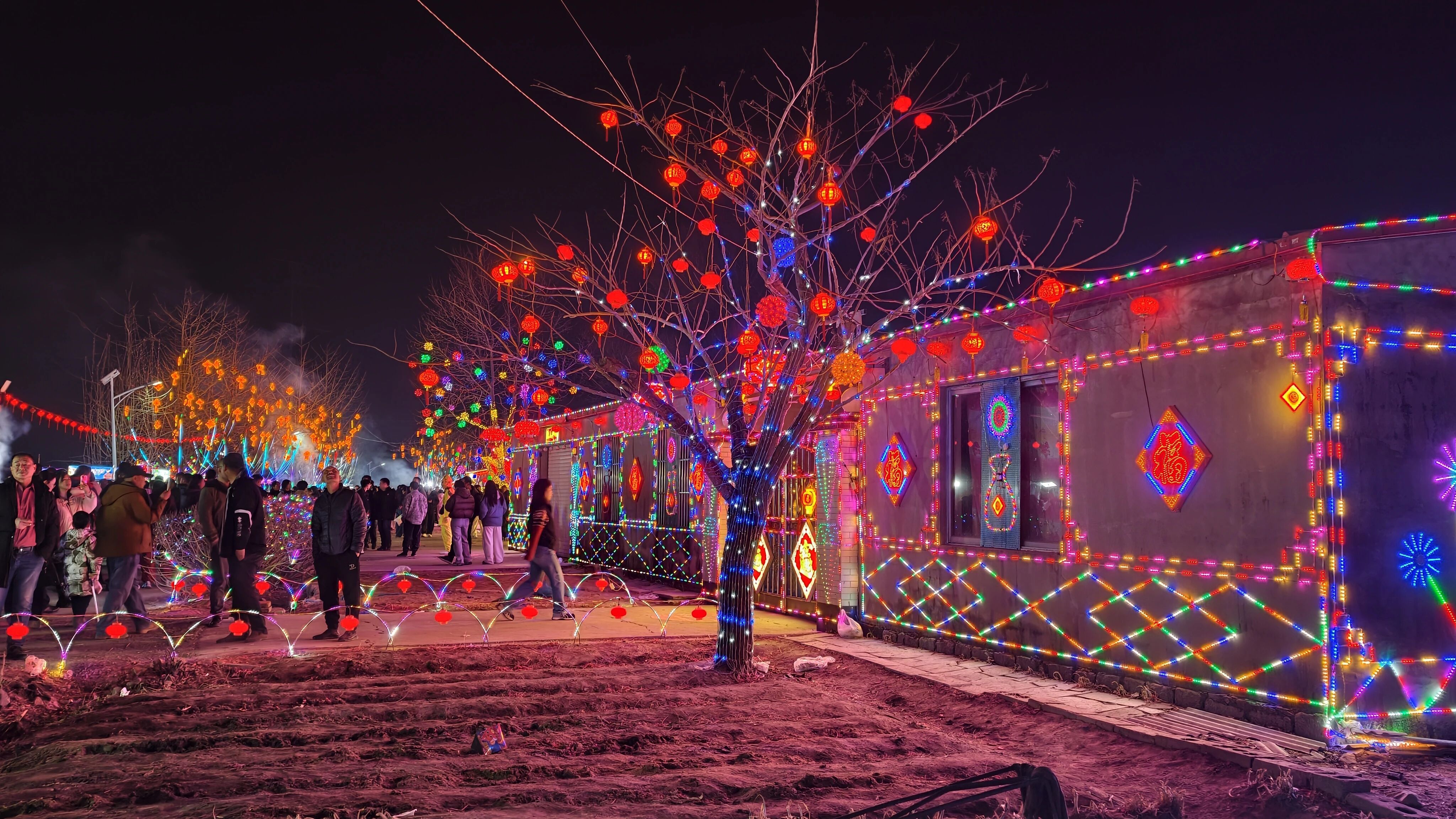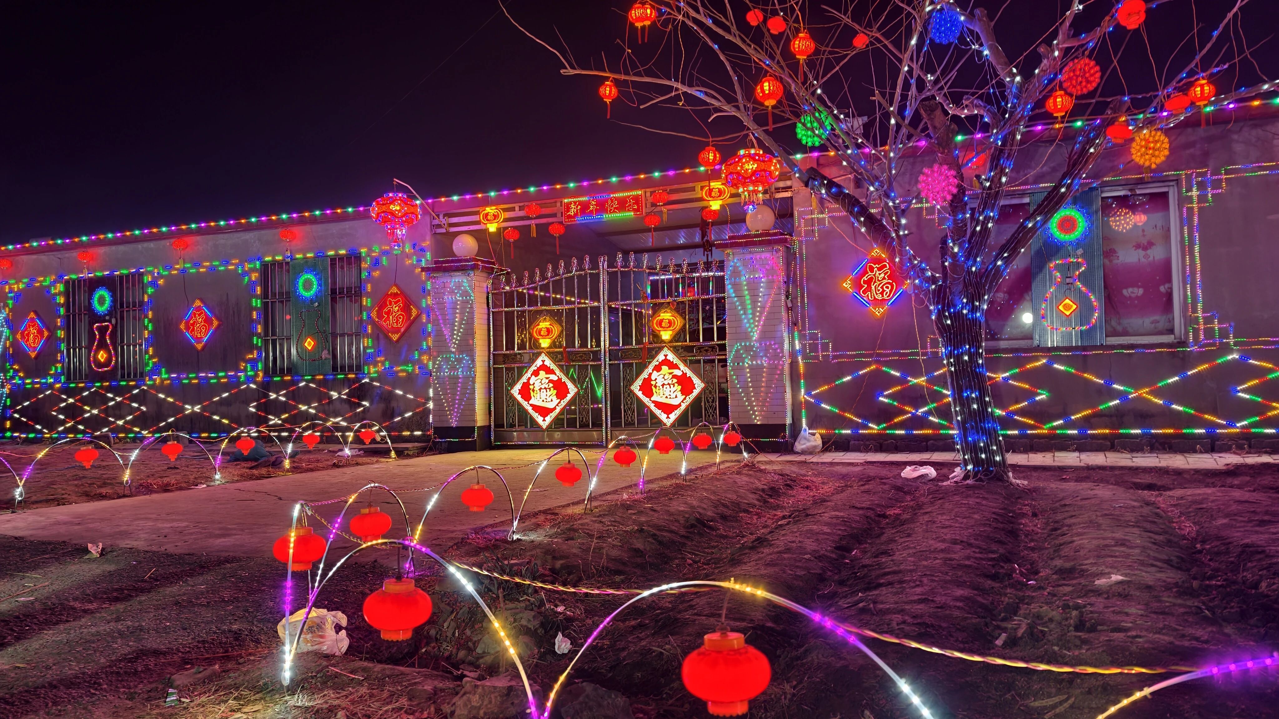 为迎接马年新春,村民们自发投入人力物力,每家每户都认真利用彩灯布置,将对新一年的期盼融入每一盏灯光中。