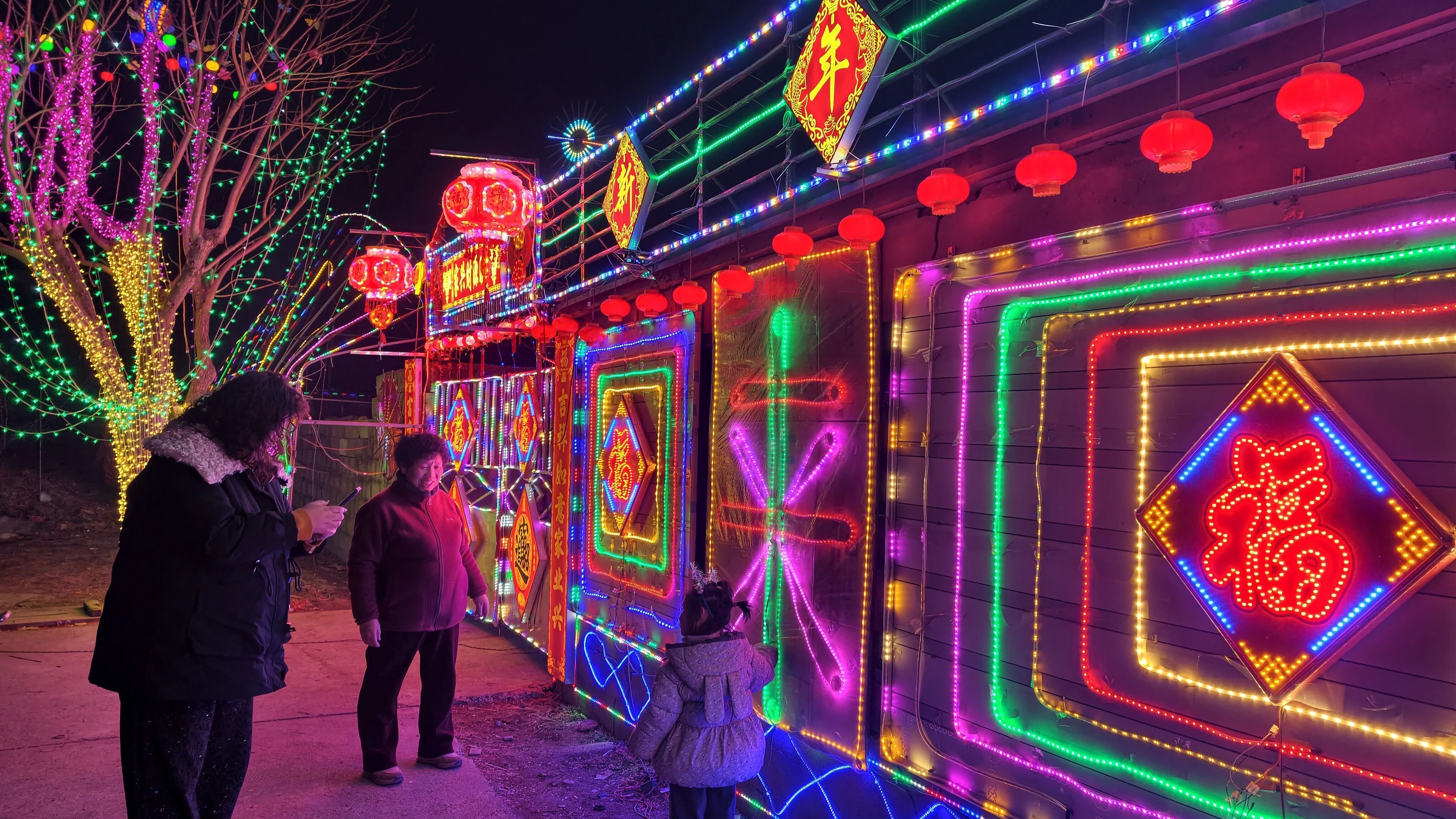 从传统红灯笼到创意灯牌,从树木缠绕彩灯带到墙面动态图案,各式彩灯让乡村道路、农家庭院、公共空间如梦似幻,行走其间仿佛置身童话世界。