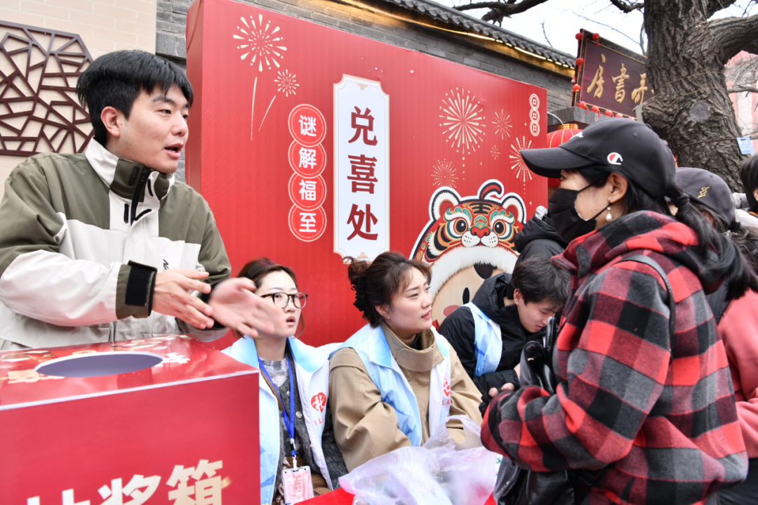 猜灯谜是元宵佳节不可或缺的传统习俗,九纬路沿街布设的灯谜展板前围满了兴致勃勃的市民游客,灯谜内容不仅融入马年元素,更巧妙结合丹东历史、红色文化及街区特色,兼具趣味性与知识性。