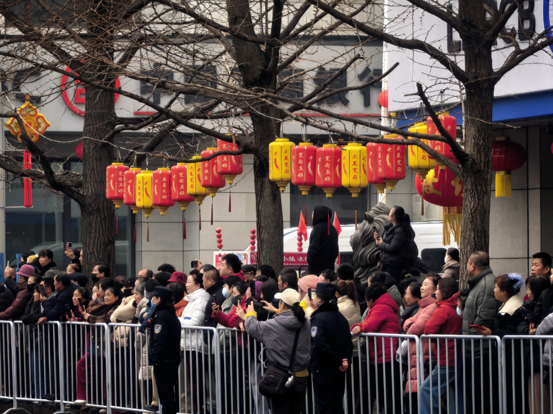 “正月十五扭秧歌是咱们传统年俗,这不年味一下子就上来了。”“今天的秧歌表演太精彩了。”“我们特意从乡下赶过来,这才是正月十五该有的样子。”虽然天气微凉,却丝毫阻挡不住广大群众的热情,大家你一言我一语,满街都充满节日的喜庆氛围。