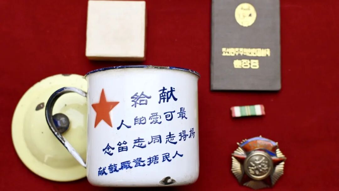 杨建华少将此次捐赠的文物弥足珍贵,一件是国内慰问团赠送给杨得志司令员的搪瓷缸,缸身印有“最可爱的人 杨得志同志留念”字样,承载着祖国人民对志愿军将士的深情厚谊;另一件是朝鲜最高人民会议常任委员会授予申戈军的二级自由独立勋章及证书,见证了这位巾帼英雄在战场上的英勇表现。