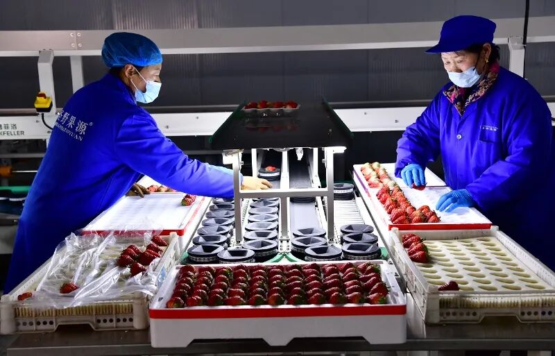 近日,记者来到东港市十字街镇的丹东市圣野浆果专业合作社,这里是一派忙碌的景象,智能分选设备运转的轻微嗡鸣,将一颗颗红艳艳的草莓通过“智能分选流水线”,完成从田间到盒装的品质蜕变。