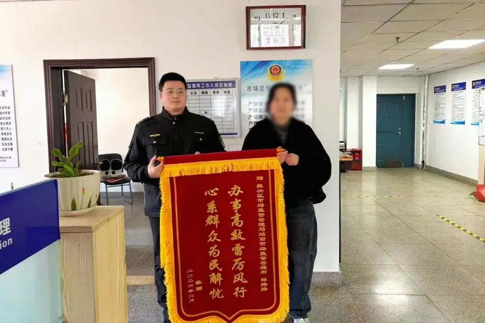 “办事高效雷厉风行,心系群众为民解忧。”近日,一面锦旗被送到振兴区站前市场监督管理所。此前,一名外地消费者因身体不适需要变更行程,向商家申请退款时遭推诿,无奈之下,向站前市场监督管理所求助。站前市场监督管理所第一时间介入调解,明确商家法定义务,最终促成全额退款。这面锦旗,折射出市场监管部门优化营商环境的坚定决心和有力举措。
