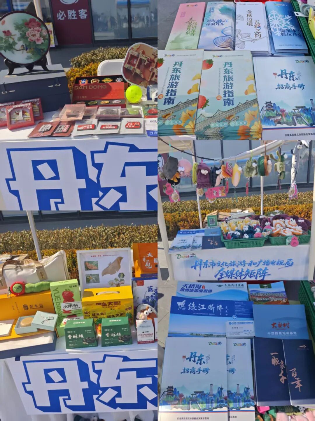 杉杉奥特莱斯嘉年华市集现场,丹东展位亮点纷呈。"大吉和喜旺"品牌文创、丹东融媒抗美援朝主题文创、省级非遗晶涛景泰蓝铂晶画错落摆放,板栗、蚕蛹酥、希悦食品及“蚕本色”柞蚕丝制品等特产集中陈列,"优迪诺"匹克球运动器材活力亮相,丰富展品集中展示了丹东文旅体商深度融合的发展成果,吸引众多嘉宾与游客驻足了解。