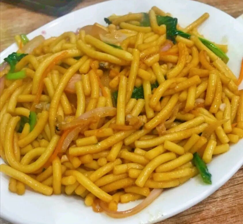 地方小食:炒(米叉)子筋道入味,搭配海鲜堪称绝配,逛吃途中来一份,满口都是丹东味道。