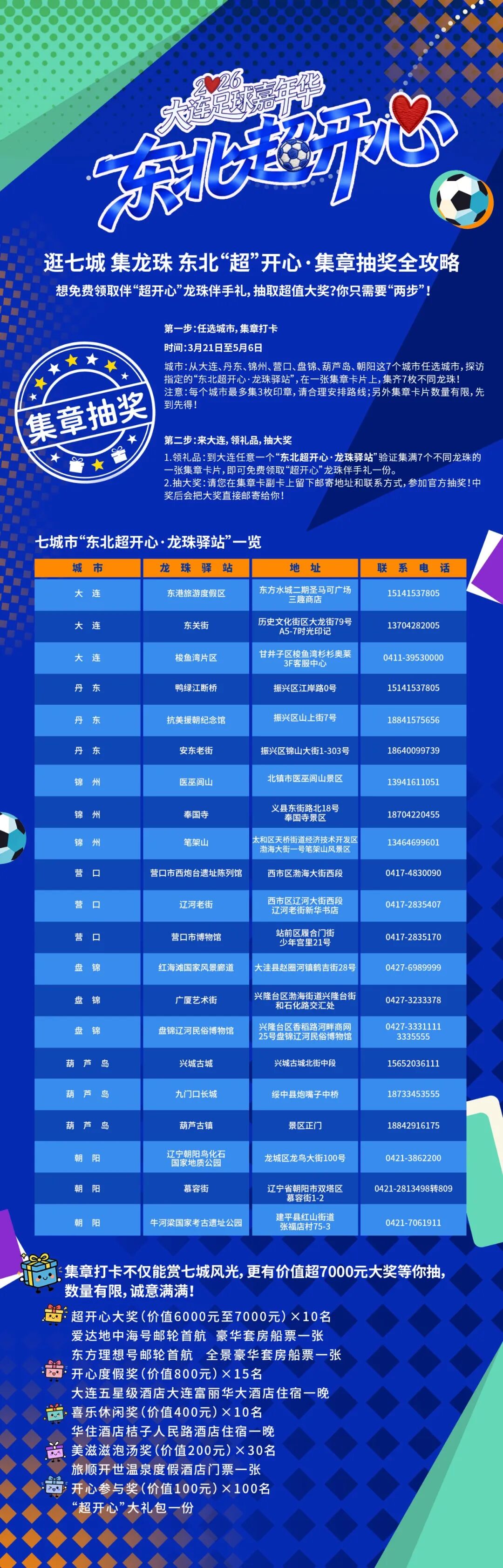 集齐七城印章后,前往大连任意龙珠驿站核销,更有价值超7000元大奖等你抽,数量有限,诚意满满!
