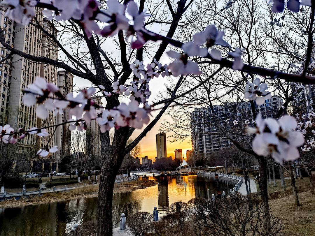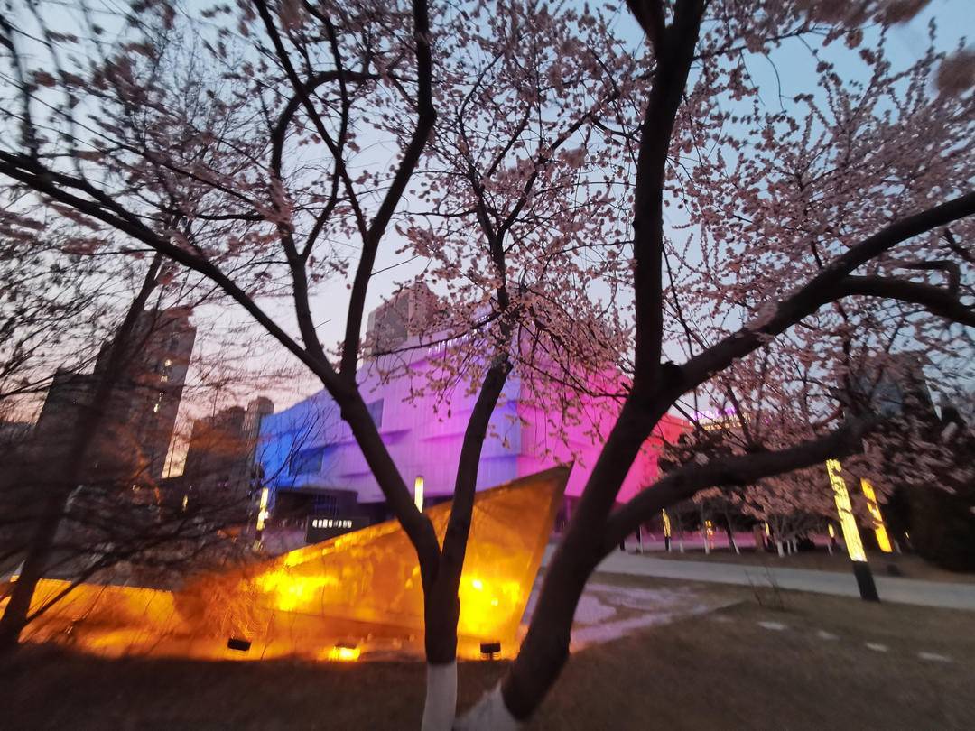 漫步河畔,层层桃花随风轻颤,夕阳余晖为花枝与水面镀上暖金,夜幕下大剧院霓虹与繁花交织,尽显春日浪漫。不少市民携家人朋友前来赏花漫步,用镜头定格美好,在花香中感受春天的生机与惬意。