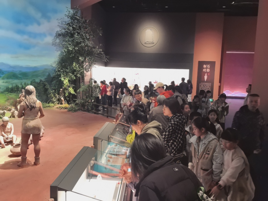 在牛河梁遗址博物馆,武先生一家认真观看馆内红山古国、文明发端、人文始祖、祈福圣坛、古国王陵、玉礼开端、牛河梁出土文物展等展览内容,对红山文化的起源、分布状况、类型特点、发展进程,以及对牛河梁遗址“庙、坛、冢”等主要遗迹和玉礼器的价值与意义,有了全面了解。