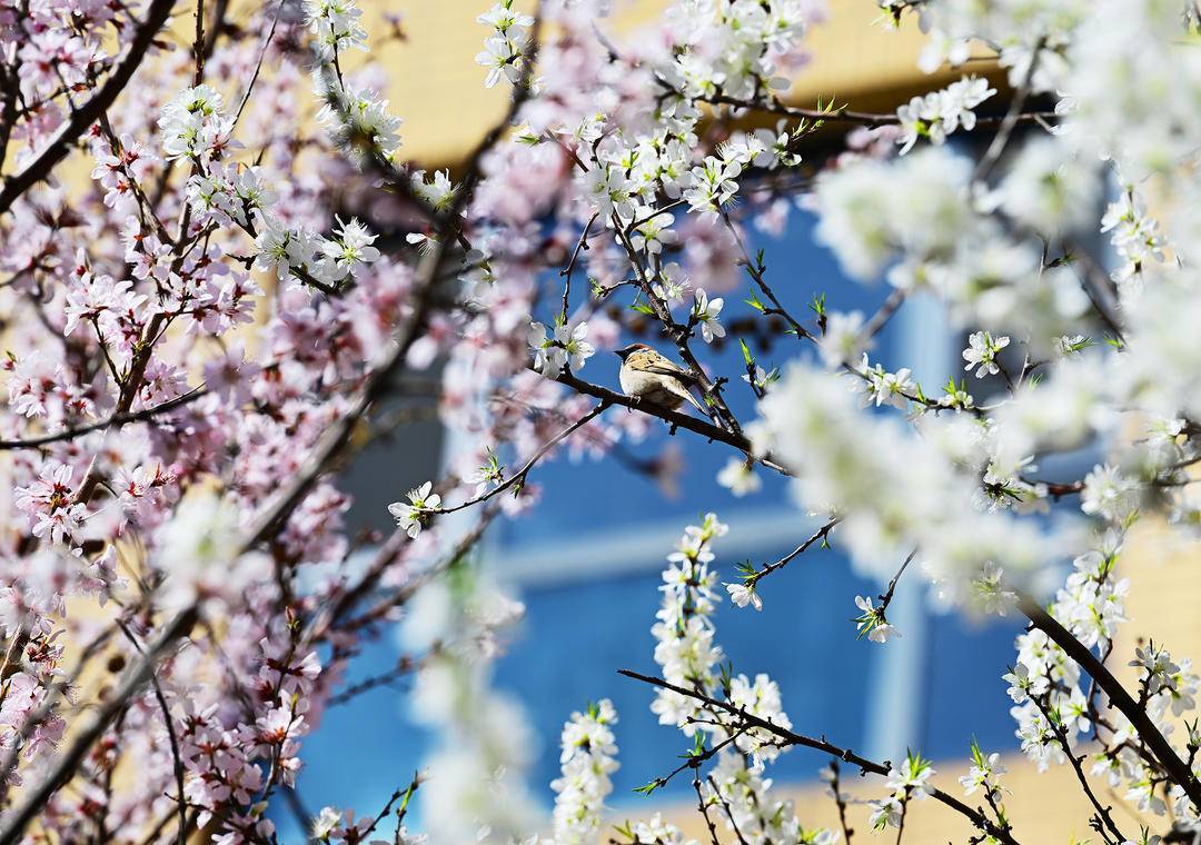 漫步小区的林荫小道、休闲广场与楼宇之间,春日的芬芳扑面而来。洁白素雅的玉兰花亭亭玉立,花瓣温润如玉,在枝头悄然绽放;色彩斑斓的郁金香迎春盛放,绚烂夺目;粉嫩的桃花、杏花挨挨挤挤缀满枝头,花苞娇羞待放,花朵肆意舒展,小鸟驻足嬉戏,叼啄花瓣,花与鸟相映成趣,勾勒出一派浪漫动人的春日盛景。