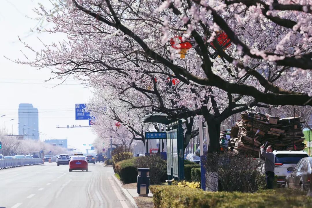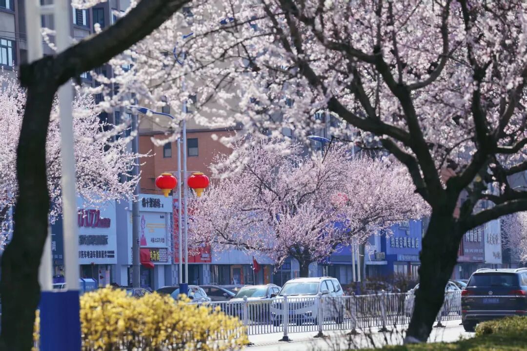 漫步在东港南路与振兴街,街路两侧京桃树繁花满枝,化身春日景观带。粉白花朵层层叠缀,粉嫩娇柔、洁白素雅,深浅相映,将街道装点得如梦似幻。春风拂过,花枝轻摇,淡雅花香沁人心脾,让人仿佛踏入春日秘境。