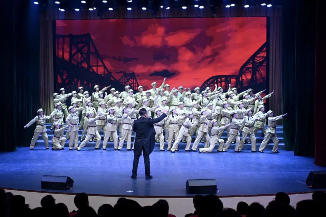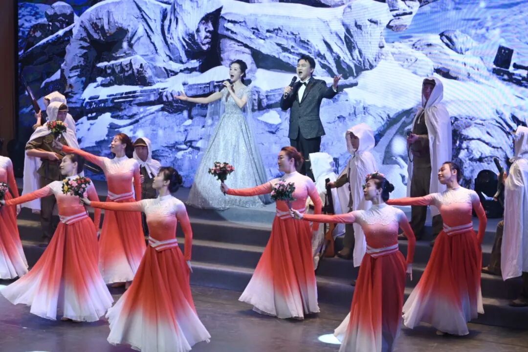 演出在情景合唱《中国人民志愿军战歌》《英雄的赞歌》《我的祖国》中拉开帷幕,雄壮旋律唤醒英雄城市的红色记忆。