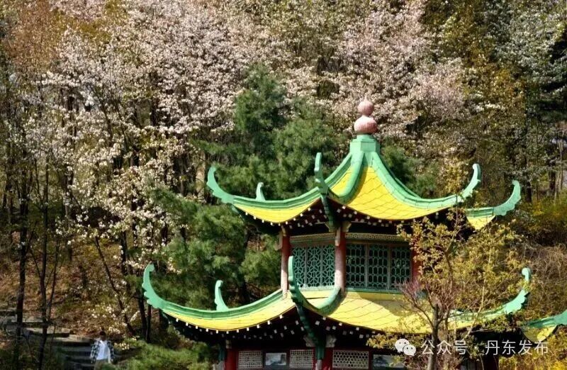樱花主要分布在公园南坡林区。从正门进入,到公园前山主景区经荷花池到文化园,是一条经典的“樱花隧道”观赏路线。登临锦江亭远眺,可将如雪的花海、层叠的城市建筑与静谧的鸭绿江风光尽收眼底,构成丹东独一无二的春日画卷。