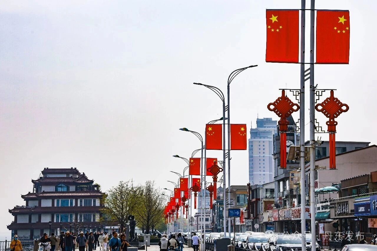 记者在滨江中路看到,工人们将崭新的国旗悬挂在路灯杆两侧,鲜艳的五星红旗与川流不息的城市街景交相辉映,这正是先烈们用生命守护的盛世安宁。
