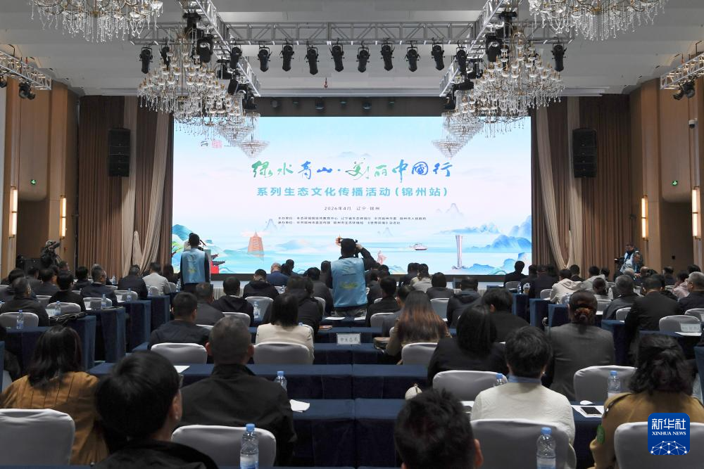 4月22日,嘉宾共同启动“绿水青山·美丽中国行”锦州站系列生态文化传播活动。(新华社记者 马宁 摄)