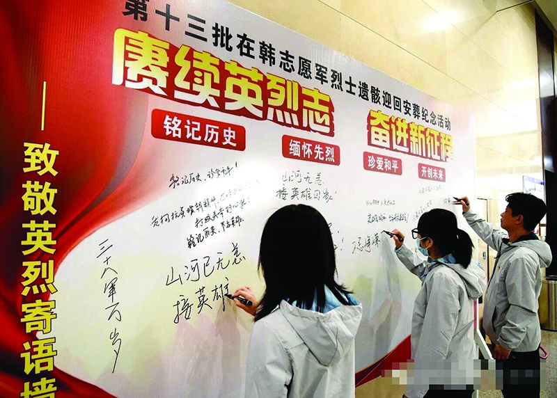 在第十三批在韩中国人民志愿军烈士遗骸归国之际,抗美援朝纪念馆精心设置“山河铭记 英雄回家”主题缅怀寄语专区,广大市民与各地游客纷纷前来,以花寄思、以语传情,在深情追忆中致敬革命英雄,在心灵感悟中传承红色精神。