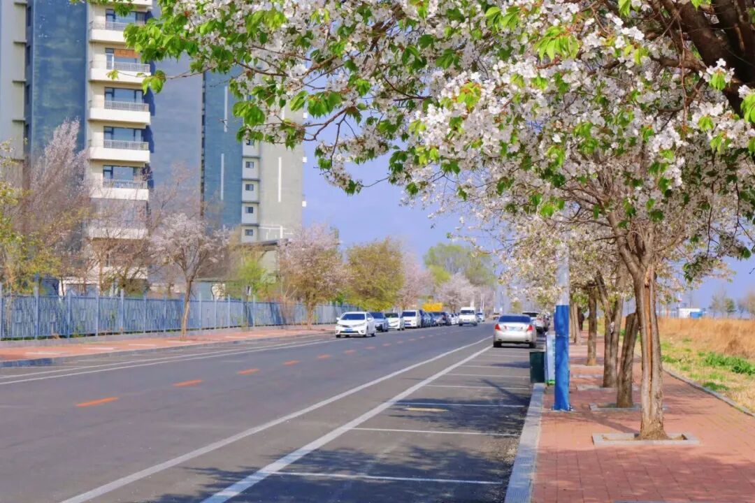 不远处的国安路,道路两旁樱花烂漫盛放,如云似霞的粉白花海铺满道路。除了樱花,新加坡城周边还有玉兰花、晚樱等花卉相伴绽放,不断刷新着春日视觉体验,尽显新区生态之美。