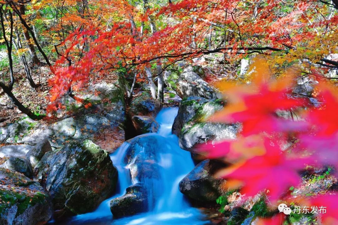 今年秋季雨水偏多,天桥沟山涧溪谷迎来了难得的盛水期。山麓间,秋风轻拂山林溪流,一场秋雨一场早露,惹得山间色彩渐变斑斓,森林的颜色都切换到了高饱和度模式。