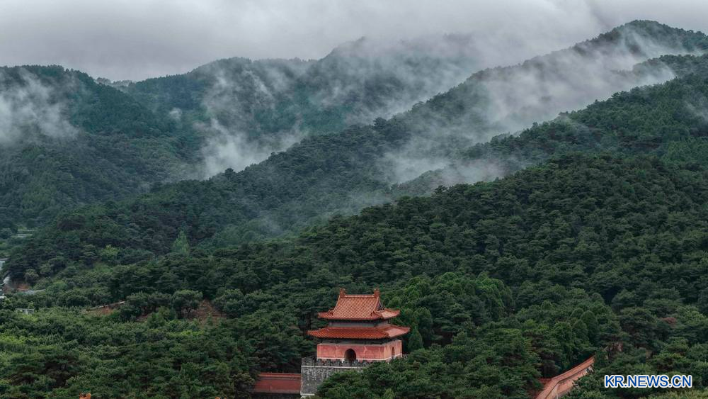이날 오전 하북성 준화시의 세계문화유산 청둥릉에 운무가 피어나 그림 같은 장관을 이루었다.
