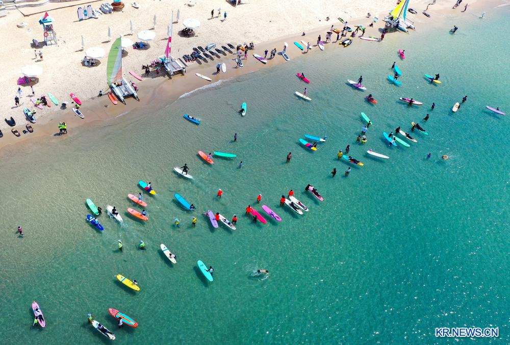 [신화망 삼아 8월 11일] 여름 휴가철을 맞아 많은 관광객이 해남성 삼아시에 모여들었다. 이들은 바다에서 서핑을 배우고 즐기며 여름을 만끽했다.