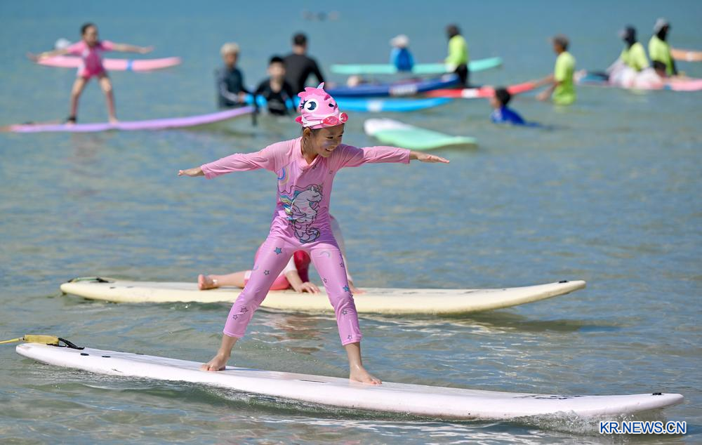 중국 삼아, 여름 휴가철 맞아 서핑족으로 북적