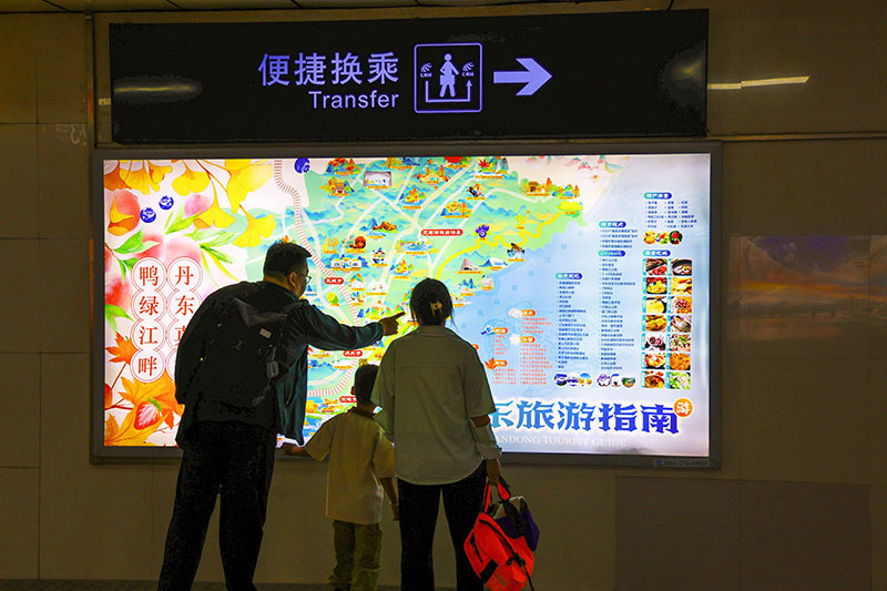 장랑에는 또 관광지도가 설치되여 관광객들이 빠르게 관광동선을 파악할 수 있도록 하여 ‘한눈에 단동을 알 수 있게’ 하였다. 외지 관광객 정미아는 “기차에서 내리자마자 이렇게 많은 관광지 소개를 볼 수 있어 아주 직관적이고 정겹다”고 말하였다. 단동시민 류효운도 “선전판이 참 아름답고 단동의 특색을 잘 보여주어 자랑스럽다”고 하였다.