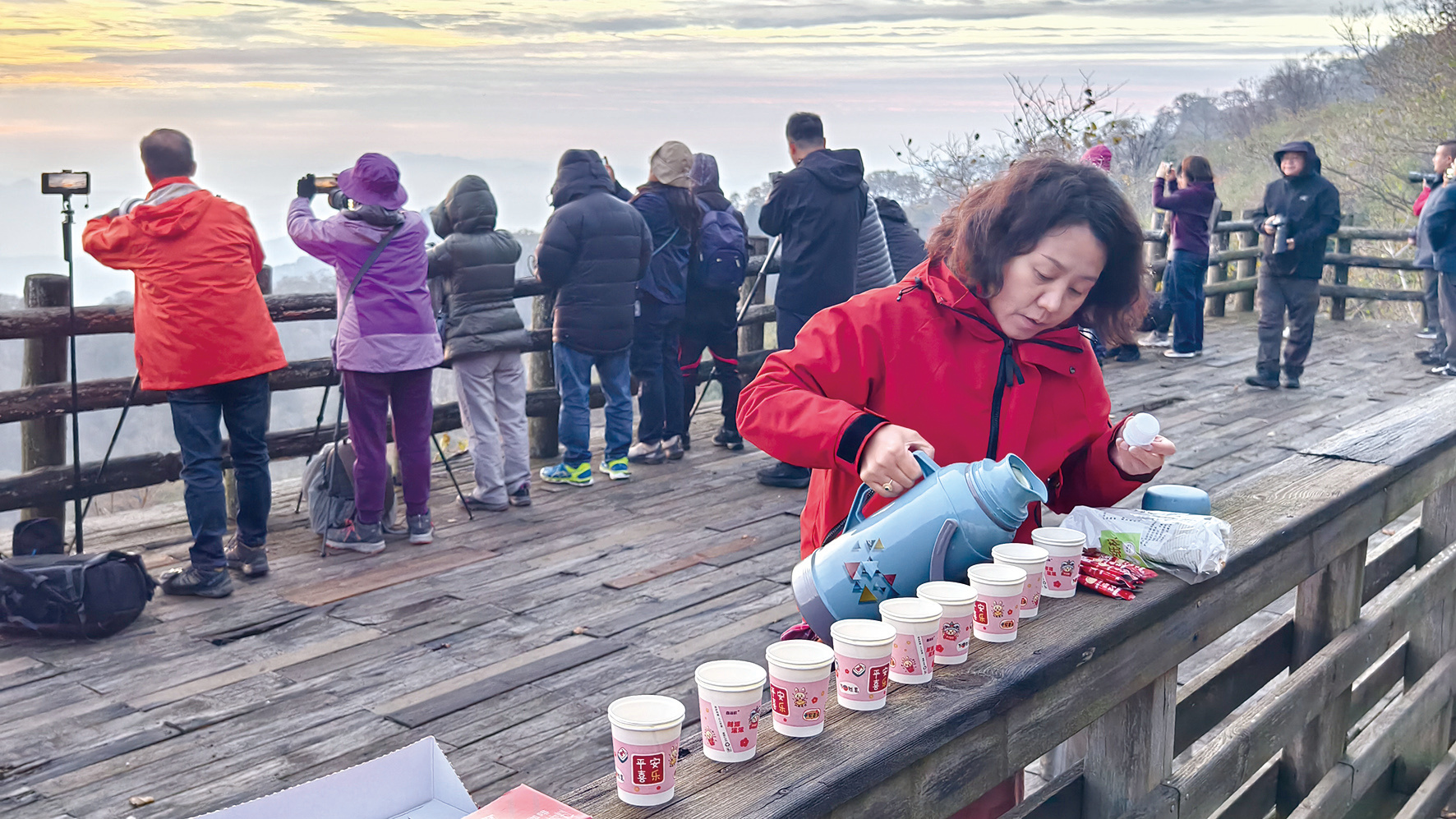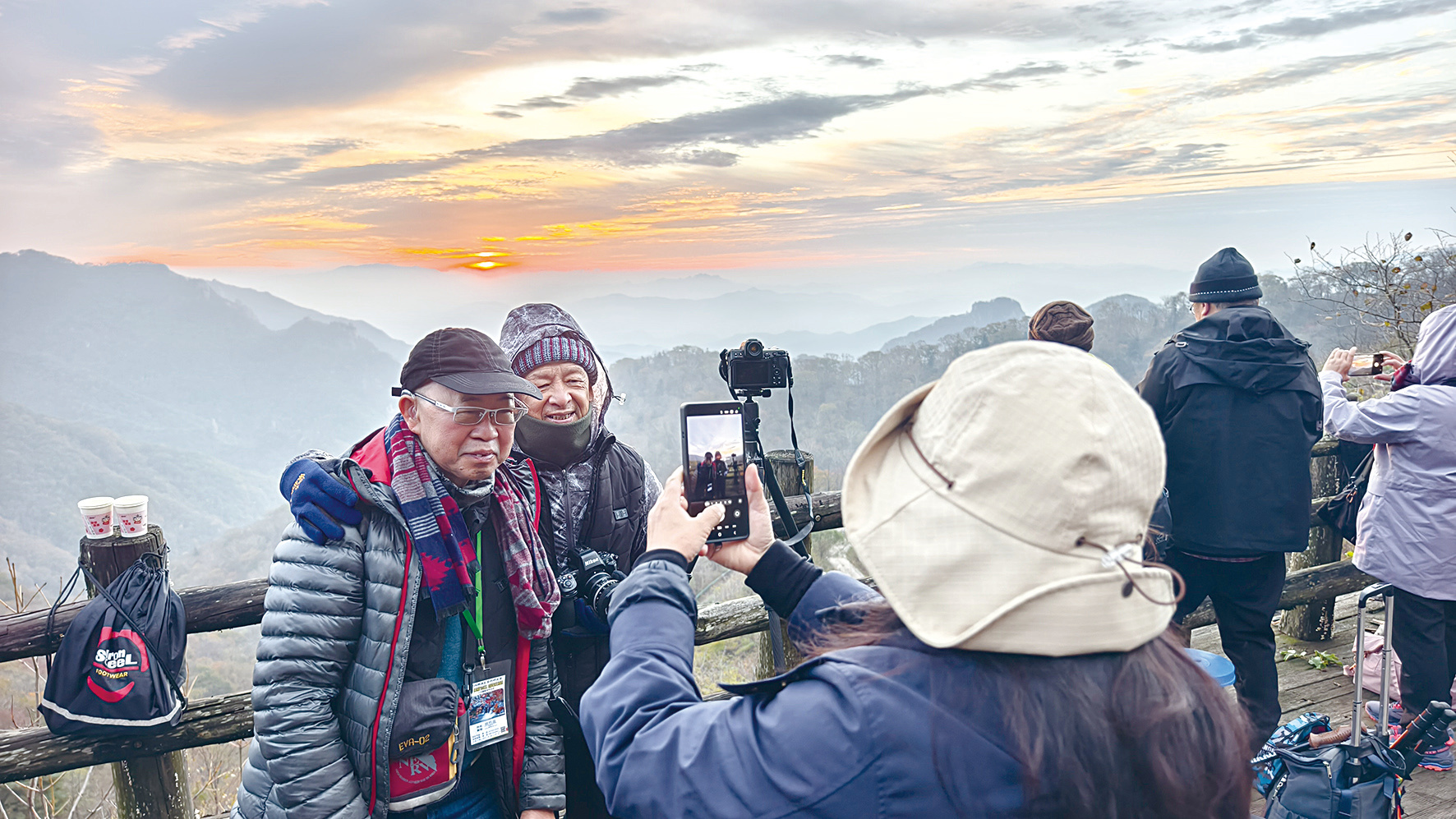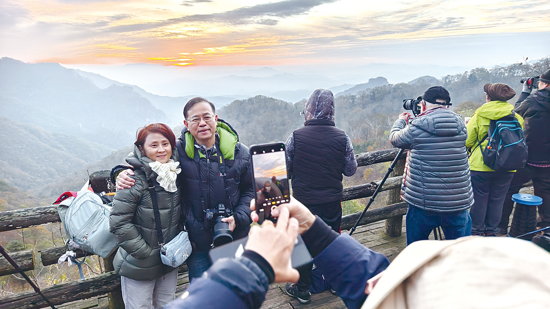 10월 12일 새벽, 관전만족자치현 천교구 풍경구의 최고점인 해발 1,040메터 정상에서 홍콩에서 온 12명으로 구성된 촬영팀 일행이 풍경구 직원들의 안내를 받아 일출 촬영에 나섰다.