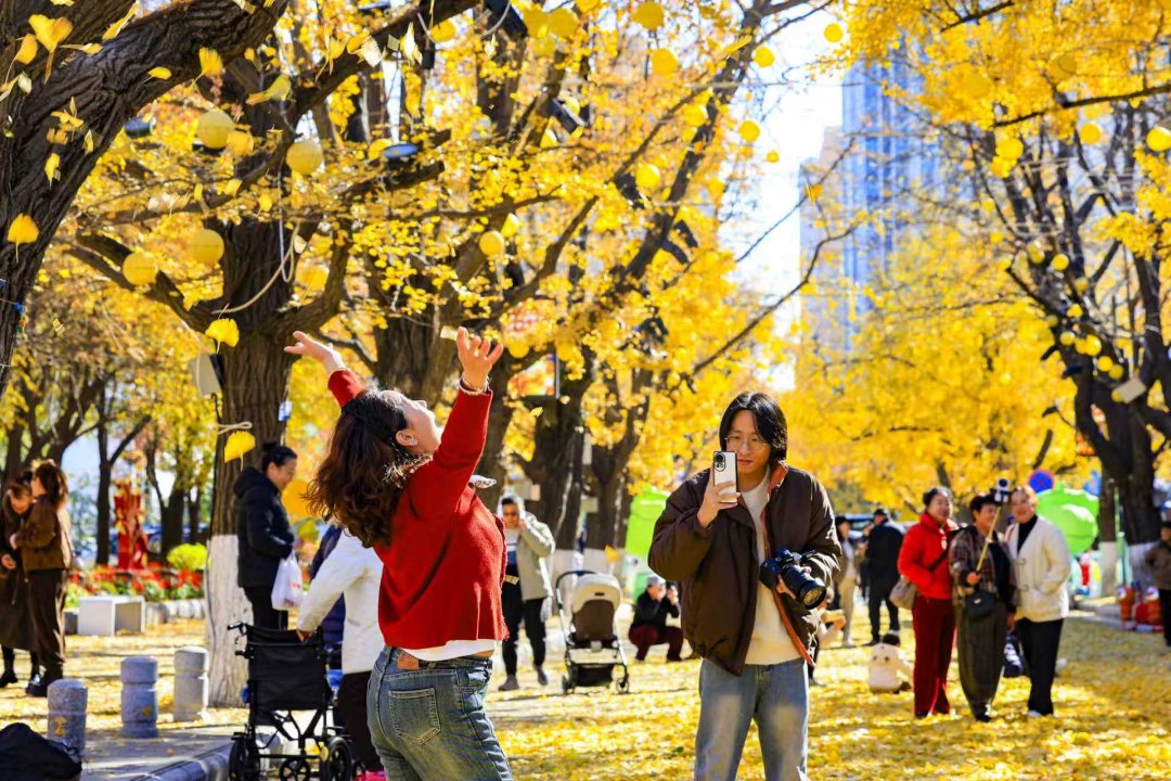 만추 단동의 기온이 내려갔으나 은행나무 경관은 여전히 시민들과 관광객들을 끌어들였다. 구위로 ‘황금도로’의 백년 은행나무잎은 황금빛으로 물들었고 나무마다 황금빛을 뿜어냈다.
