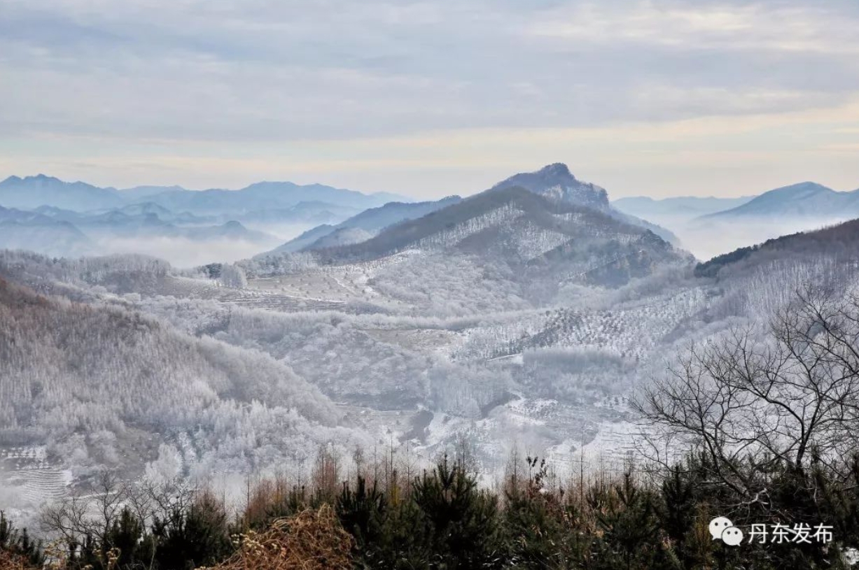관전 보달원진의 혼강가에서는 아침 안개가 걷히며 량안 나무들에 하얀 서리가 내려 아름다운 무송 경관을 이루었다.